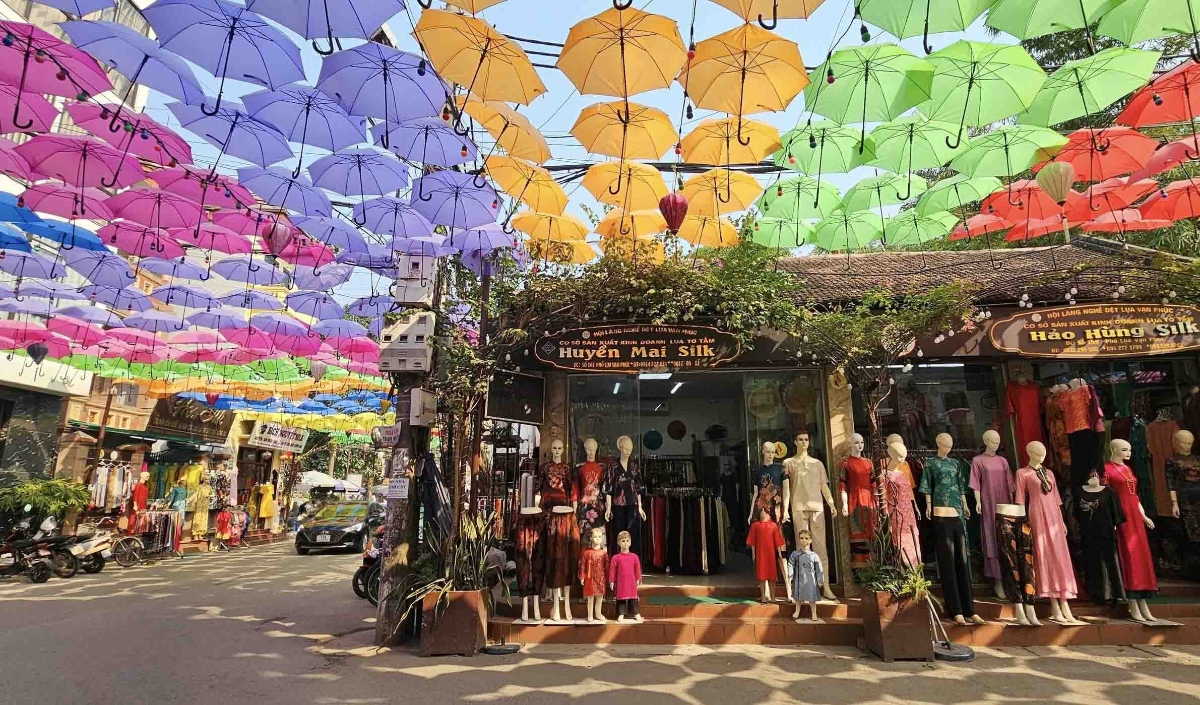 Tương tự, làng lụa Vạn Phúc tại Hà Đông, Hà Nội cũng là một điểm đến tiêu biểu của du lịch làng nghề. Được xem là “cái nôi của nghề dệt lụa” Việt Nam, Vạn Phúc thu hút du khách bởi những con đường rực rỡ sắc lụa, các khung cửi truyền thống cùng những sản phẩm lụa tinh xảo. Không gian làng nghề ngày càng được đầu tư chỉnh trang với các tuyến phố đi bộ, khu trưng bày sản phẩm và nhiều điểm check-in, góp phần nâng cao trải nghiệm cho du khách.